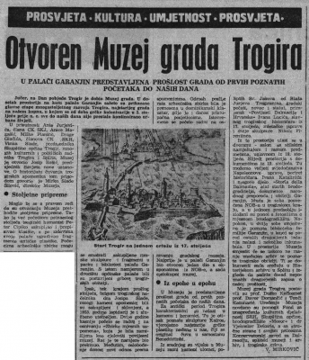 Slobodna Dalmacija 10. svibnja 1966. godine objavila je članak “Otvoren Muzej grada Trogira” u kojemu autor V. Mirković piše o tome kako su “u desetak prostorija na katu palače Garanjin sažeto prikazane glavne etape mnogostoljetnog razvoja Trogira, najstarijeg grada na našem kopnu, u kojemu se od doba grčke kolonizacije (…) sve do naših dana nije prestalo kontinuirano živjeti.”. Članak u cijelosti pročitajte u nastavku: