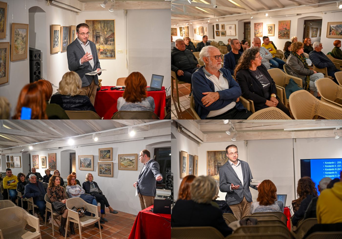 Program je otvorila ravnateljica Muzeja grada Trogira, Lujana Paraman, dipl. arheol., uvodnim osvrtom koji je postavio okvir za temu, predstavivši i nekolicinu novih spoznaja temeljenih na recentnim arheološkim istraživanjima. Dr. sc. Ivan Basić potom je održao predavanje “Ranosrednjovjekovni Trogir na razmeđu društava: grešni Pavao i njegov natpis” te na izuzetno zanimljiv način predstavio povijesni kontekst i značenje jedinstvenog natpisa iz Trogira, kroz iscrpnu komparativnu perspektivu i analizu.