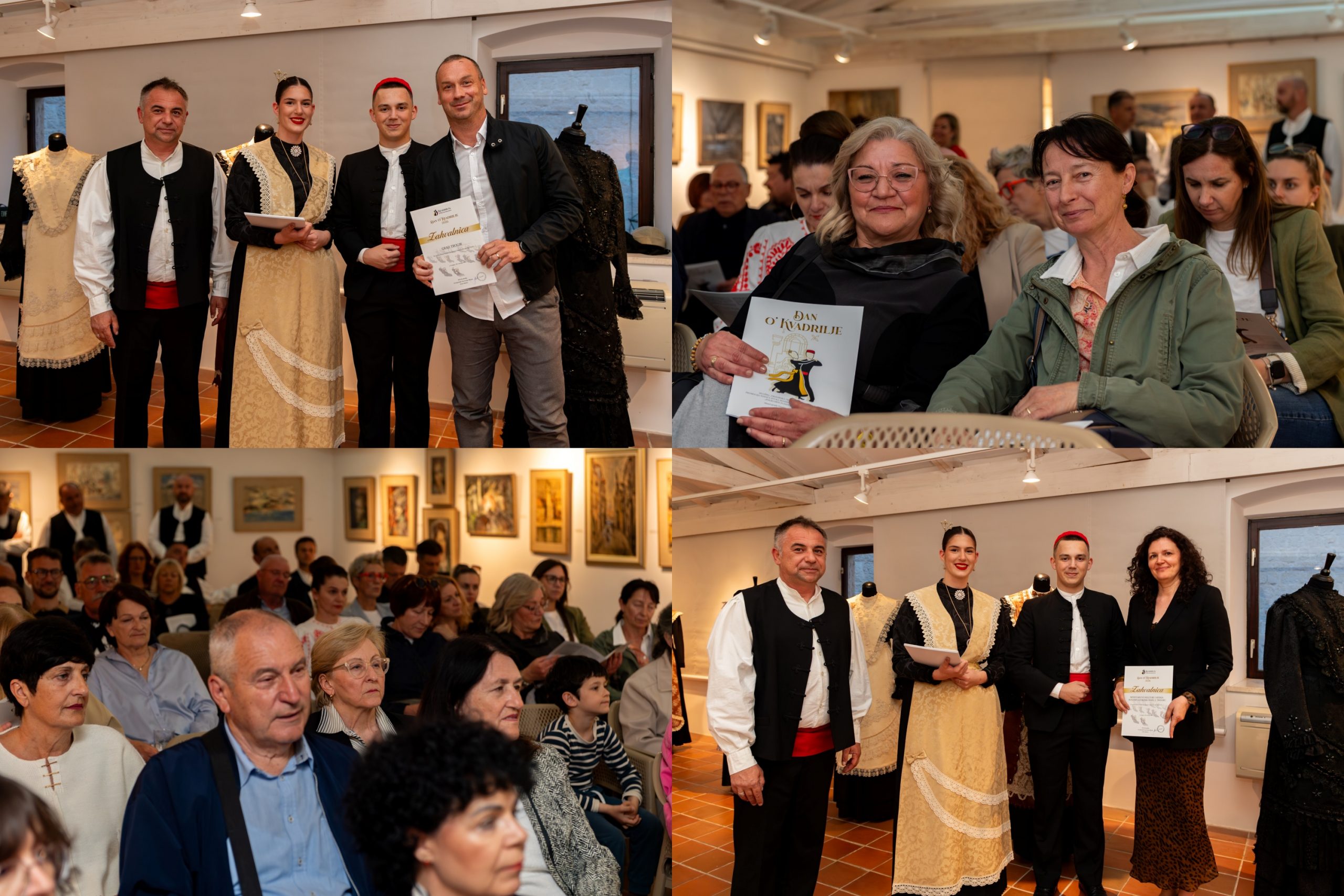 U Galeriji Cate Dujšin – Ribar u ponedjeljak, 20. travnja zavladala je folklorna kulturno-umjetnička atmosfera otvorenjem ovogodišnjih Dana o´ Kvadrilje. Program je započeo izložbom „Trogirska narodna nošnja“ te predstavljanjem nosača zvuka „Folklorni plesovi srednje Dalmacije“ Mandolinskog orkestra KUD-a „Kvadrilja“.